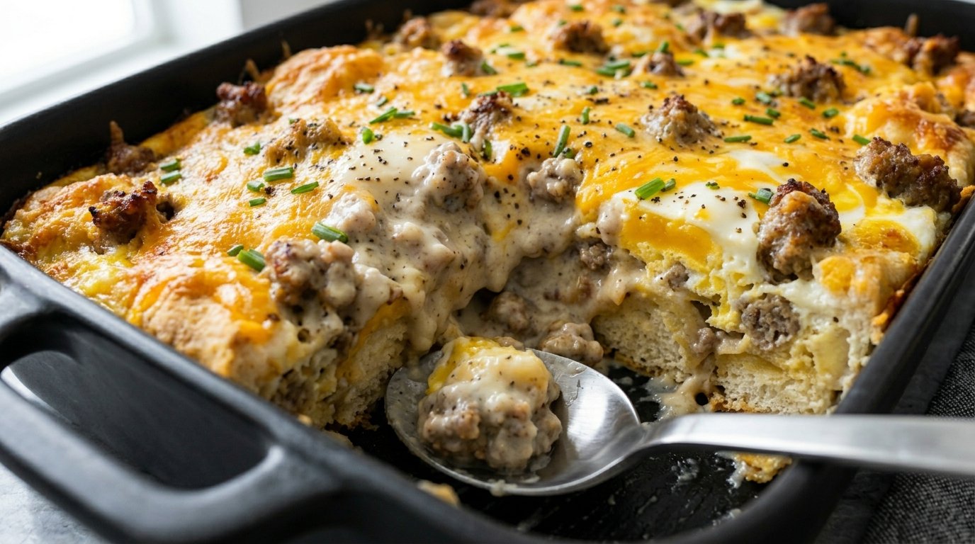 This Biscuits And Gravy Breakfast Casserole Recipe is a true comfort dish that’s easy to make and perfect for sharing. It’s warm, filling, and full of flavor—everything you want in a breakfast casserole.