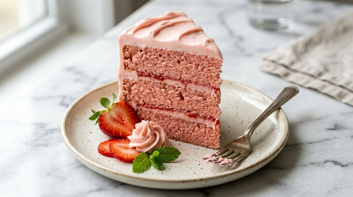 This cake is soft, fruity, and beautifully balanced. It’s not too heavy, not too sweet, and packed with real strawberry flavor.