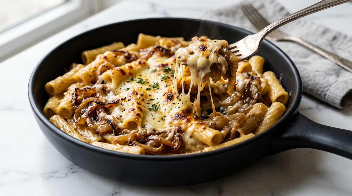 As a home cook, I’ve always loved classic French onion soup—the slow-cooked onions, the depth of flavor, the cozy feeling in every spoonful. But one evening, I wanted something a little more filling, something that could stand on its own as a full meal. That’s when I decided to turn those same flavors into a pasta dish, and let me tell you—it was one of those “why didn’t I do this sooner?” moments.